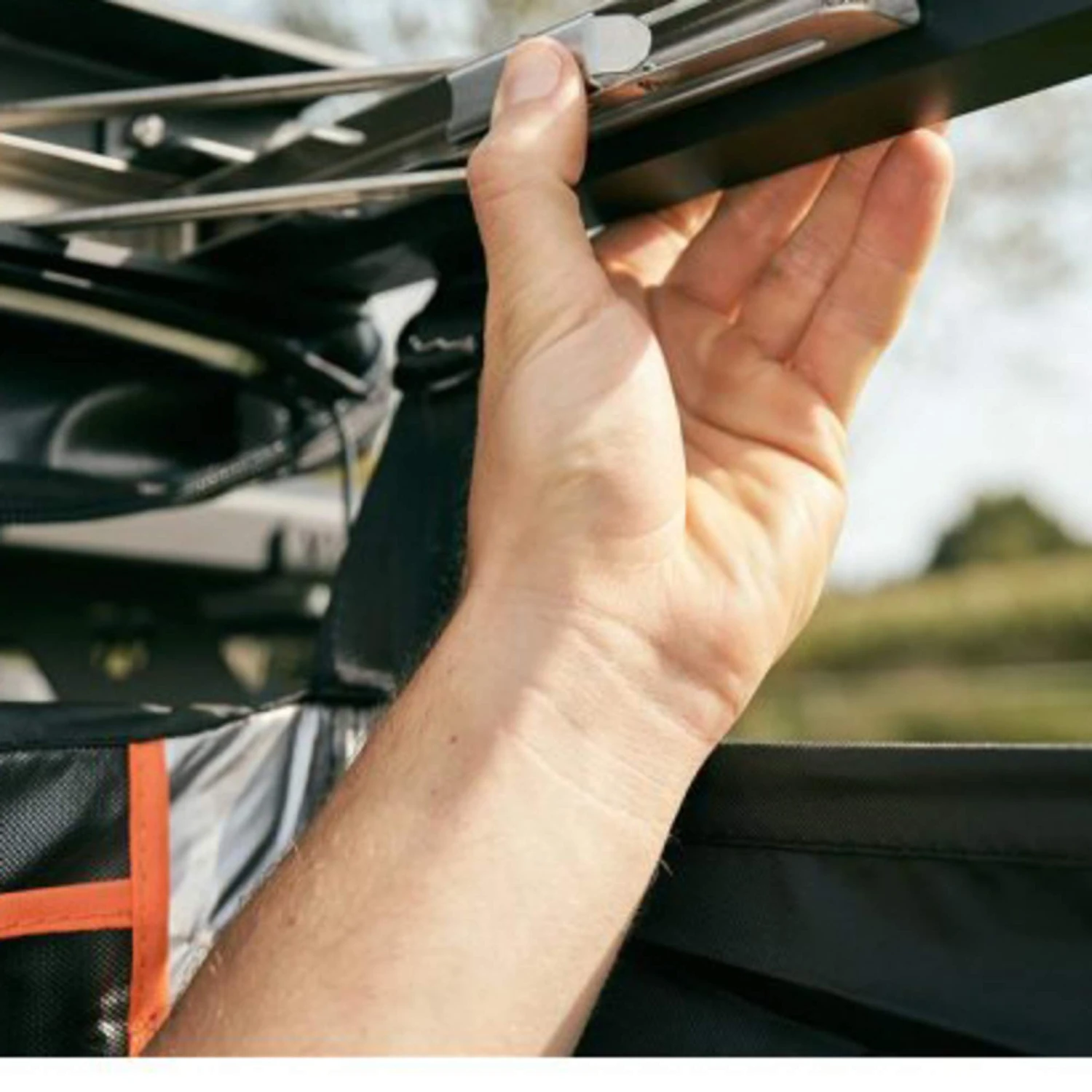 Das Duschzelt lässt sich über ein stufenloses Schienensystem ganz einfach an deinem Dachträger montieren. Durch zwei ausklappbare ist das Duschzelt im Handumdrehen einsatzbereit, der Aufbau dauert mit etwas Erfahrung nicht mal eine Minute! So ist dein Spa-Bereich immer mit von der Partie.