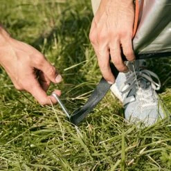 Im Oberen Bereich findest du eine Vorrichtung, an der du einen Wasserbeutel oder eine Outdoor-Dusche aufhängen kannst. Nach unten hin ist das Duschzelt übrigens offen, so kann das verwendete Wasser im Boden versickern. Deine Waschsachen wie Duschgel oder Seife kannst du in seitlichen Taschen unterbringen. So brauchst du sie nicht auf dem schmutzigen Boden abzulegen.